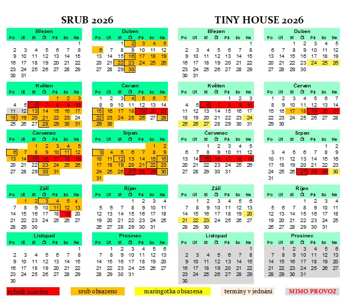 Prostor u srubu a TINY HOUSE je přednostně rezervován pro ubytované hosty. Ostatní návštěvníci mohou využít ostatní prostory.