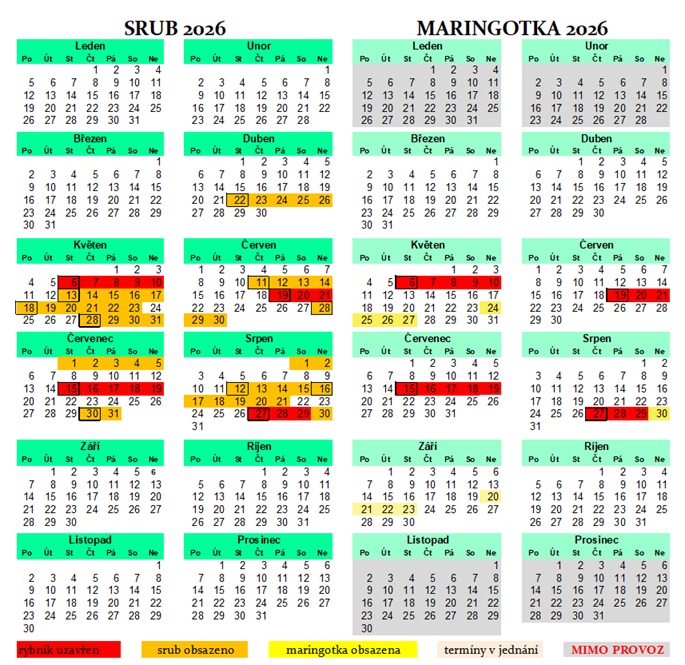 Prostor u srubu a maringotky je přednostně rezervován pro ubytované hosty. Ostatní návštěvníci mohou využít ostatní prostory.