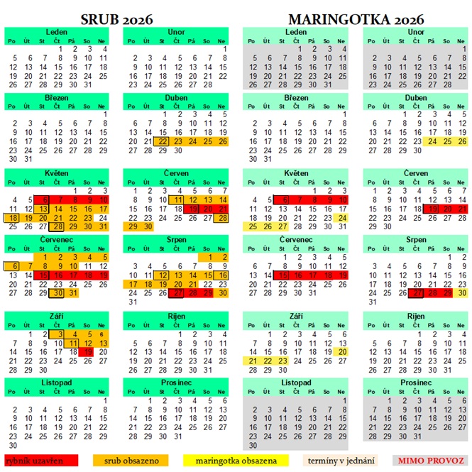 Prostor u srubu a maringotky je přednostně rezervován pro ubytované hosty. Ostatní návštěvníci mohou využít ostatní prostory.